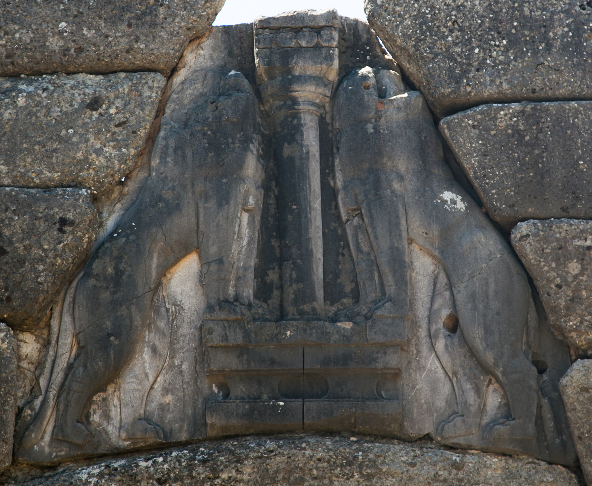 [2.16.5] It was envy that caused the Argives to destroy Mycenae. For at the time of the Persian invasion the Argives made-no-move [hēsukhazein], but the Mycenaeans sent eighty men to Thermopylae who shared in the achievement [ergon] of the Lacedaemonians. This act-of-eagerness-for-distinction [philo-tīmēma] brought ruin upon them by aggravating the Argives. There still remain, however, parts of the circumference-wall [peribolos], including the gate [pulē] on top of which stand lions. These [walls], too, are said to be the work [erga] of the Cyclopes, who made for Proitos the [circumference-] wall [teikhos] at Tiryns.